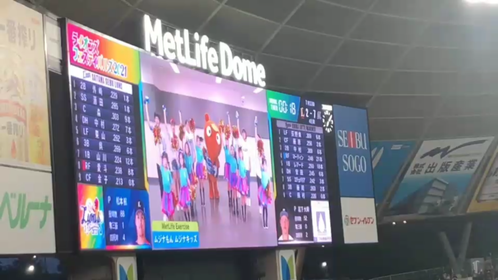 そんな普段通りの1日に突然の連絡📞!なんと!【今日の】西武ドームで開催されている試合の合間にムジナキッズたちのダンス動画が流れます。とのことΣ(・□・;)
