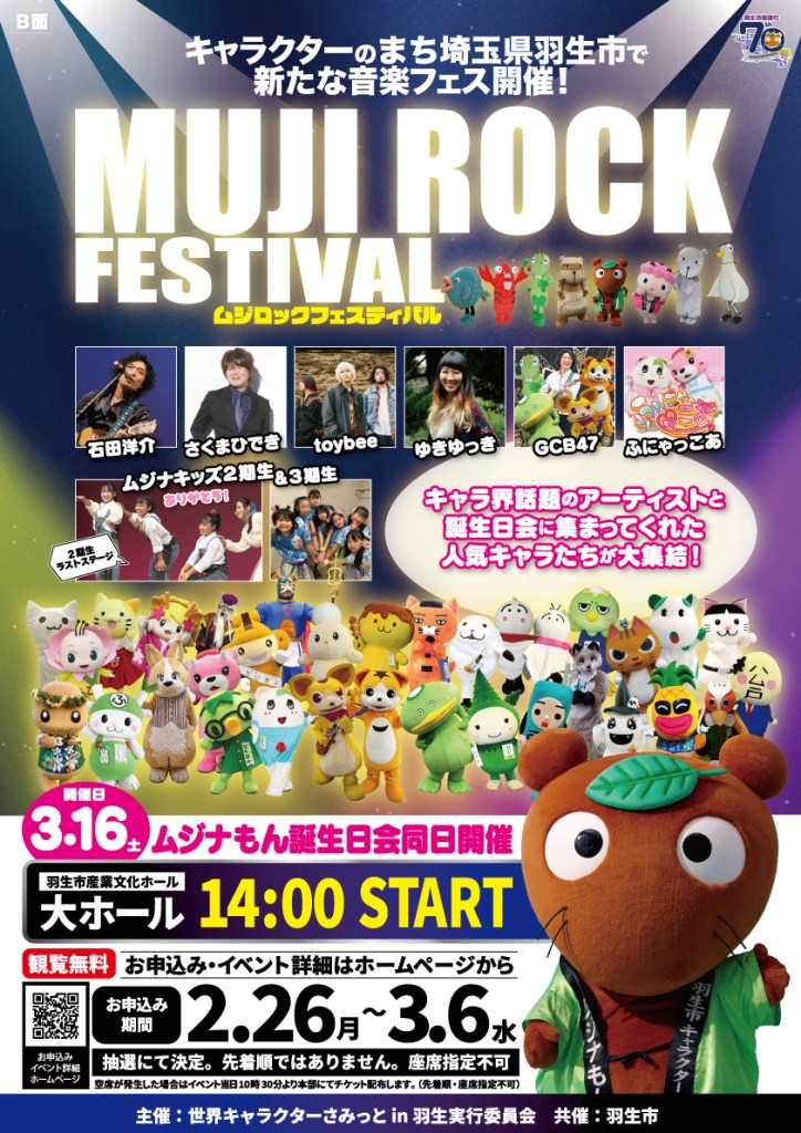 今年のムジナもん誕生日会はなんと、「MUJI ROCK FESTIVAL」を同日開催!!!!!